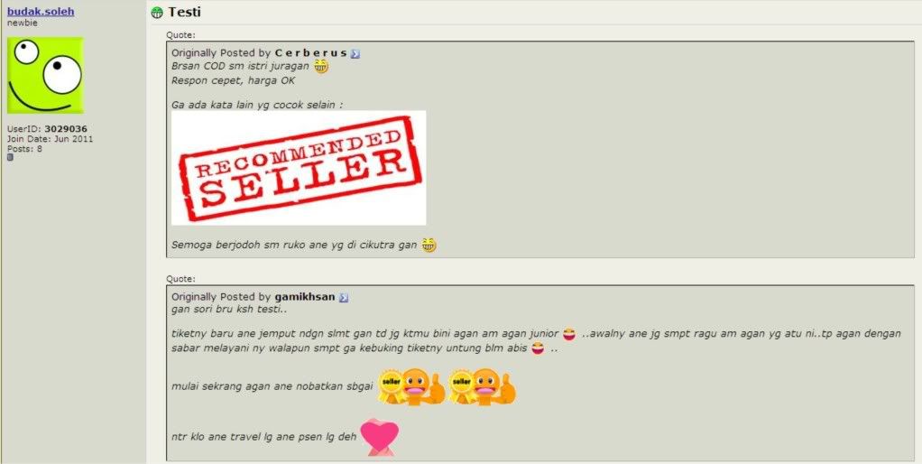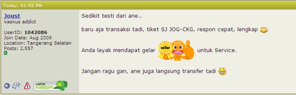 Sedikit testimony dari pengguna jasa kami yang diambil dari lapak kami di kaskus.